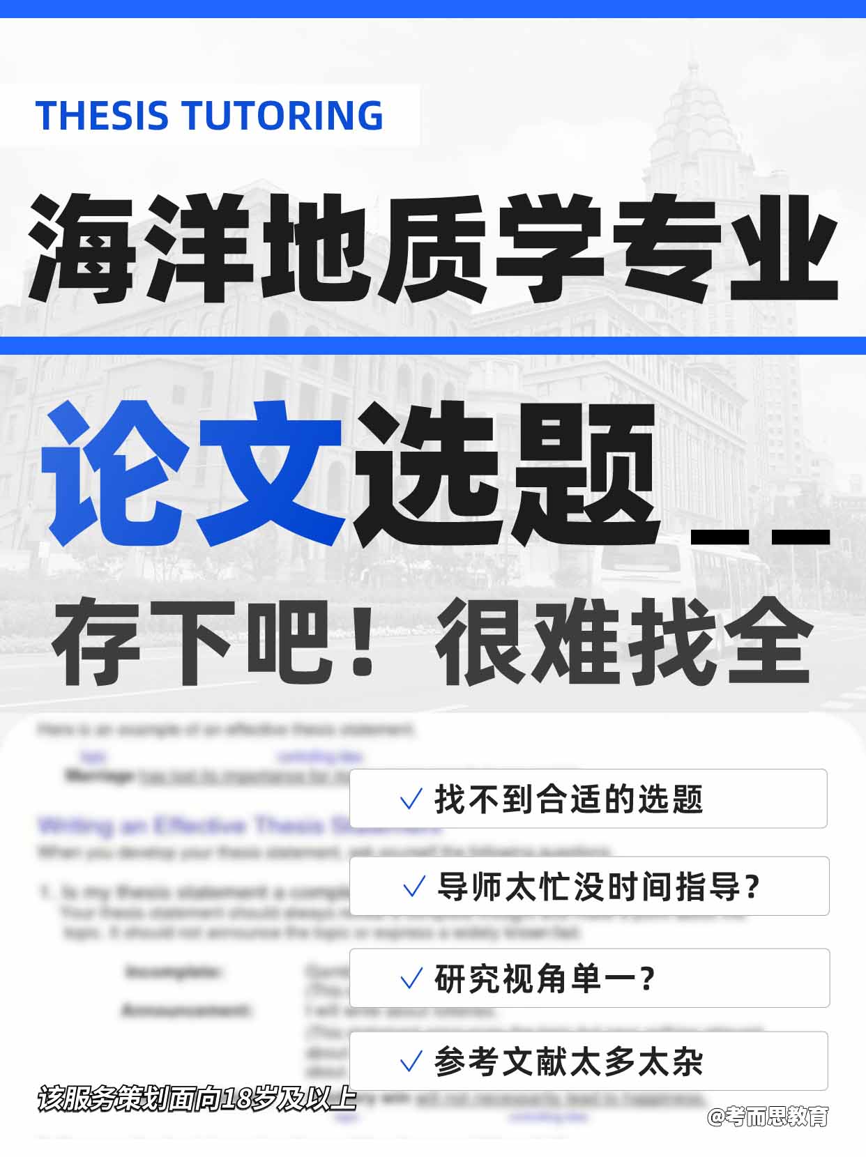 Hello,大家好!我是你们的学姐,又来给大家分享经验了 最近听到很多小伙伴为留学海洋地质学专业的论文选题而苦恼,拟好的题目总是被导师否定 别担心,这次我就来详细讲解一下选题思路和资源查找方法,让你不再为选题发愁!